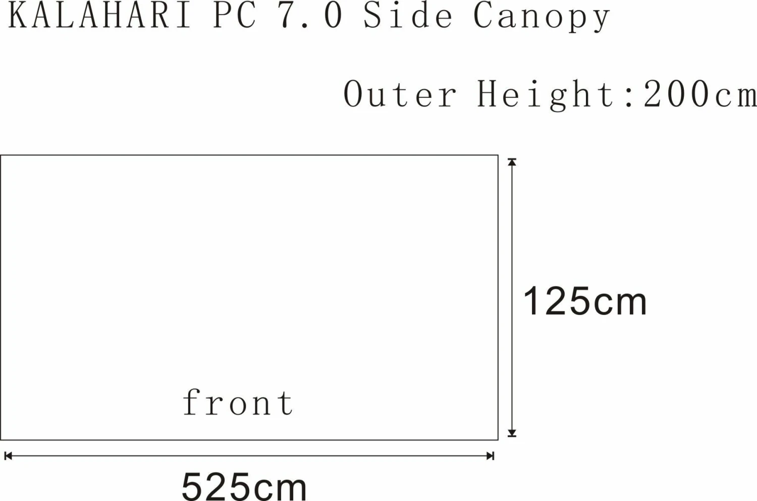 The stunning side veranda, the Outdoor Revolution Kalahari Side Canopy is a steel poled side porch, designed to fit over the side door, and offer a superb area to relax and socialise. The canopy fits to the right hand side of the tent, if you were to stand in front and look at it face on. The side canopy will only fit to this side due to the placement of the side door.