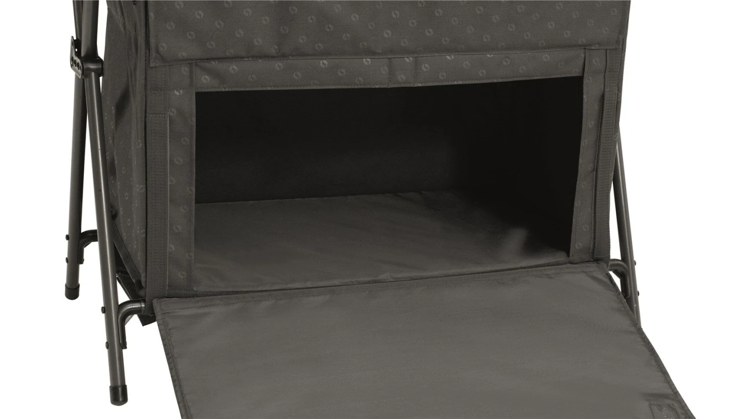 The Outwell Bahamas Storage Unit is a great addition to anybody’s collection of camping gear. The compact, lightweight cabinet provides noise free, homelike storage. It features two large shelves, a sturdy laminated top and hanging hooks on the side.
