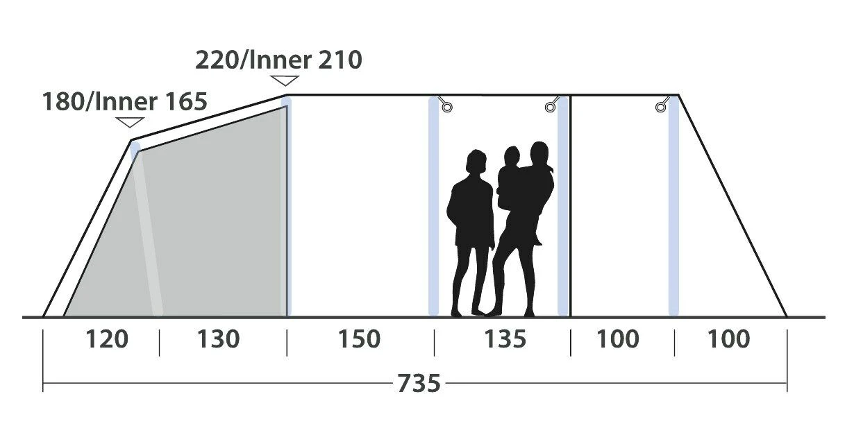 New for 2022, the Outwell Wood Lake 6atc is perfect for those needing a polycotton, inflatable tent, which is ideal for 6 people. It has a sleep comfort of five, for optimum comfort, and space. You will be the envy of the campsite, with a three-zone design, providing you with ample living space, sleeping space and standing height. Further to this, the simple and effective inflatable air system enables quick and effective pitching and set down. Each entry point is backed by a mesh panel, which massively increases airflow throughout, perfect for those hot days, where a breeze is required within, without the influx of wasps or insects. Packed full of innovative Outwell features, such as the sewn-in groundsheet, Quick and Quiet doors, and the popular Ambassador bedrooms, which are deeper, darker and well ventilated.