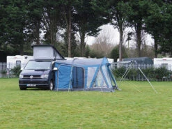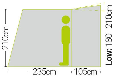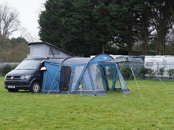 Built in zipped drive away kit and sewn in rear draught pads both offer a better connection to your vehicle and the adjustable multi fit frame adds to this by being quick pitching using the minimum amount of poles necessary and adjustable to work well on uneven ground