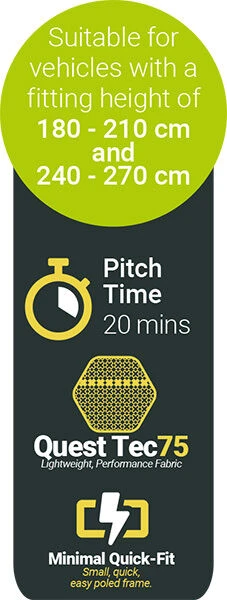 Here we have the Quest Falcon 300 Low, designed to fit vehicles with a fitting height between 180-210cm – The Falcon 300 is available in Low and High versions.