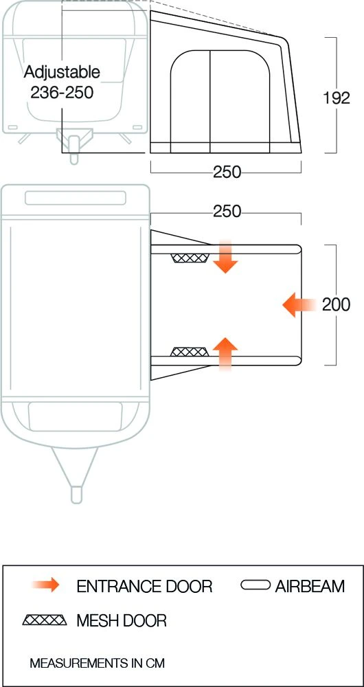 New to the collection, the Vango Balletto Air 200 caravan awning, offers a lightweight, compact design, with the Elements Shield specification – making it the perfect option for short-term holidays. With a 200cm width, the Balletto 200 is the smallest in the range, perfect for two persons, and to create storage and living space externally to the van. An entry-level product, the Balletto 200 has a Sentinel 150 Denier polyester fabric, which keeps the overall weight down to 19kg.