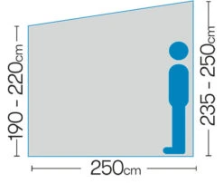 A UV protection of 50+ is the highest rating available to offer protection from the sun but also offers a 6000mm hydrostatic head should the weather turn unpleasant and a quick dry fabric makes it an ideal investment alongside your caravan. A double mud wall helps protect the fabrics when you need it. A pitching weight of 16.5kg which is great as air awnings can be quite heavy, although the awning is made to be lighter weight the total weight of the complete unit is 34.8kg so the ability to reduce the weight by removing panels whilst pitching is an added benefit, 2 transport bags included so you can also split the weight during transport