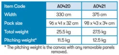 The air frame has been made with a single point inflation for quick pitching but in the unlikely case that you do run into problems you can re inflate each beam separately or remove a single tube on site if needing to repair or replace – the added benefit of air tubes is for quicker pitching and sturdier in adverse weather; The Vega 330 comes with super beams which aids to the strength and durability as the beams are less likely to bend and flex than smaller beams