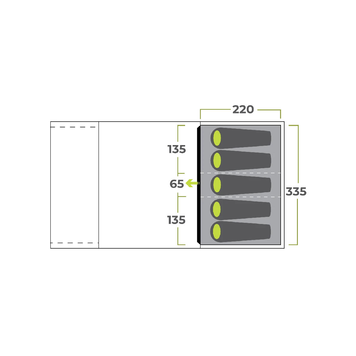 The Zempire Evo TL V2 Tent is a five-berth model with three zones, ample living space and full standing height. Continuing with the SeroLink inflatable design, this connects the air frame directly to the flysheet, helping increase the strength but also reduces weight and bulk. The beams are also pre angled to aid rigidity, strength and living space. Furthermore, the 150-denier polyester fabric is durable, and offers the best weight to quality ratio for a tent of this size, with a high hydrostatic head of 6000mm, a UPF rating of 50 and a fire retardant coating gives you confidence it has been designed with safety in mind.